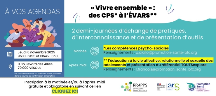 2 demi-journées d'échanges de pratiques et de présentation d'outils "Vivre-ensemble : des CPS à l'EVARS"