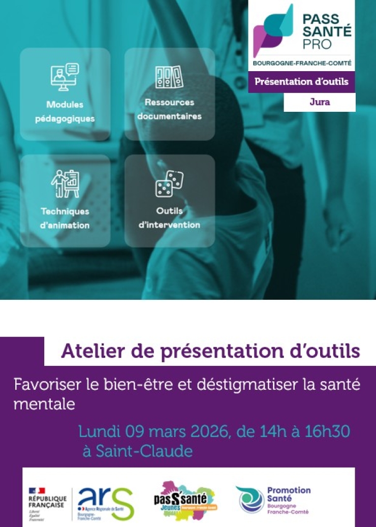 La démarche Pass’Santé Jeunes (PSJ), financée par l’Agence régionale de santé, a pour objectif de fédérer les acteurs travaillant auprès des jeunes autour de dynamiques locales de promotion de la santé avec l’appui d’outils numériques. Promotion Santé BFC, maître d’œuvre de ces outils et soutien aux dynamiques locales, propose, en partenariat avec les territoires porteurs du déploiement du PSJ, un atelier de présentation d’outils sur la santé mentale