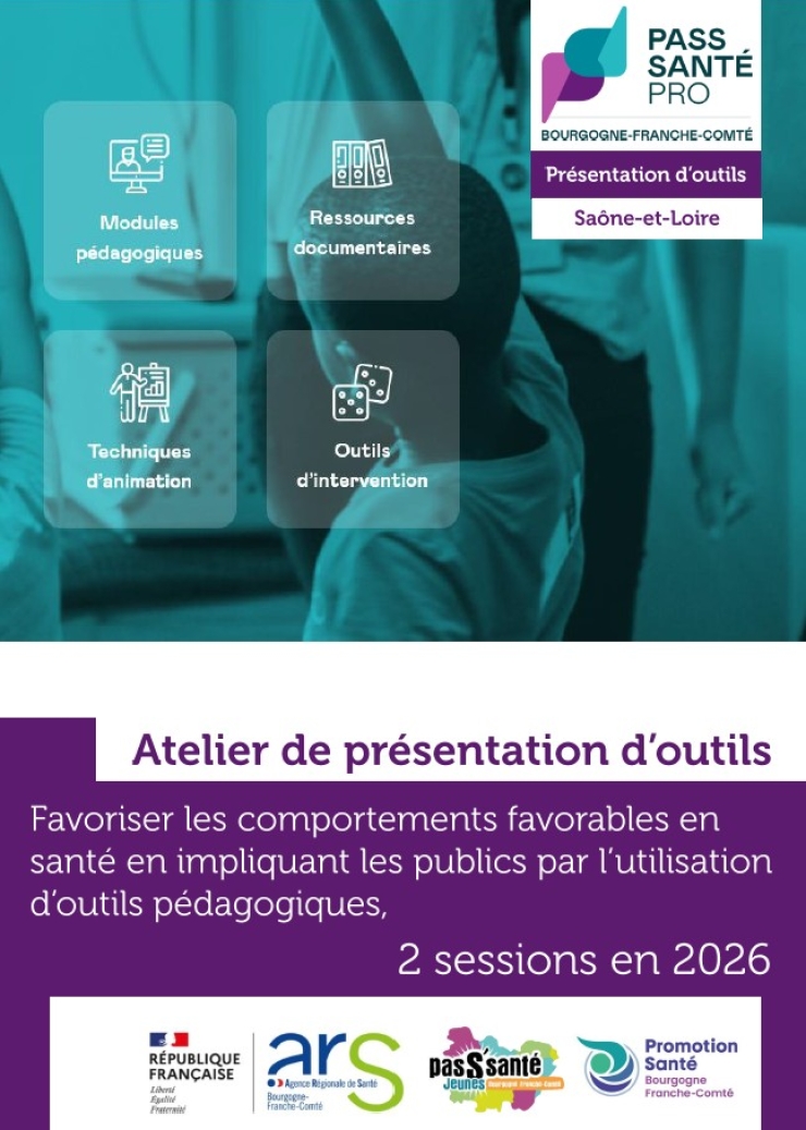 Dans le cadre de la démarche Pass' Santé Jeunes, Promotion Santé BFC vous propose de venir participer aux ateliers de présentation d'outils proposés sur les territoires pour :