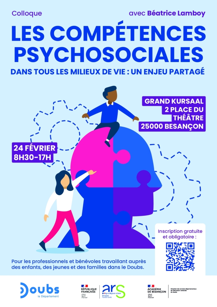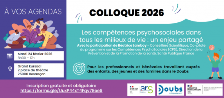 L'ARS BFC, le Conseil Départemental du Doubs et la Direction des Services Départementaux de l’Éducation Nationale du Doubs organisent un colloque départemental autour des compétences psychosociales à Besançon