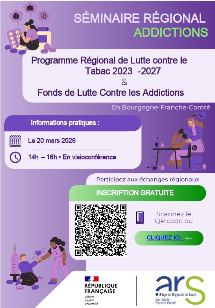 L'ARS BFC vous à participer à son prochain séminaire régional addictions, à destination des professionnels de tous les horizons : social, protection de l’enfance, handicap, santé mentale, maternité, maladies chroniques, justice, etc.
