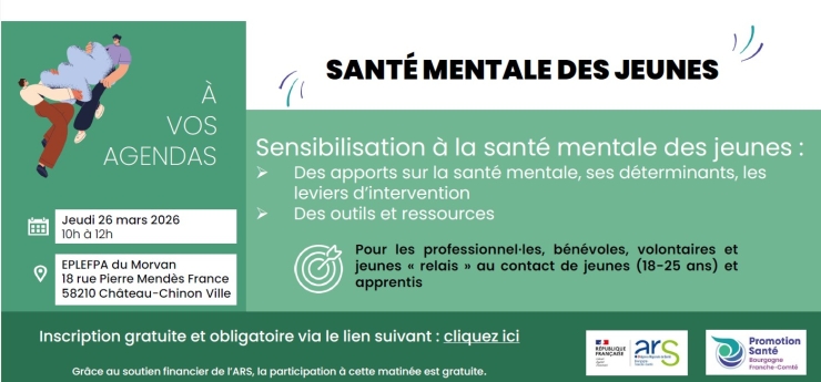 Ce temps sera l'occasion d'aborder la santé mentale, ces déterminants, les compétences psychosociales. Il sera également présenté les outils et ressources à destination des jeunes, mais également des professionnel.les.